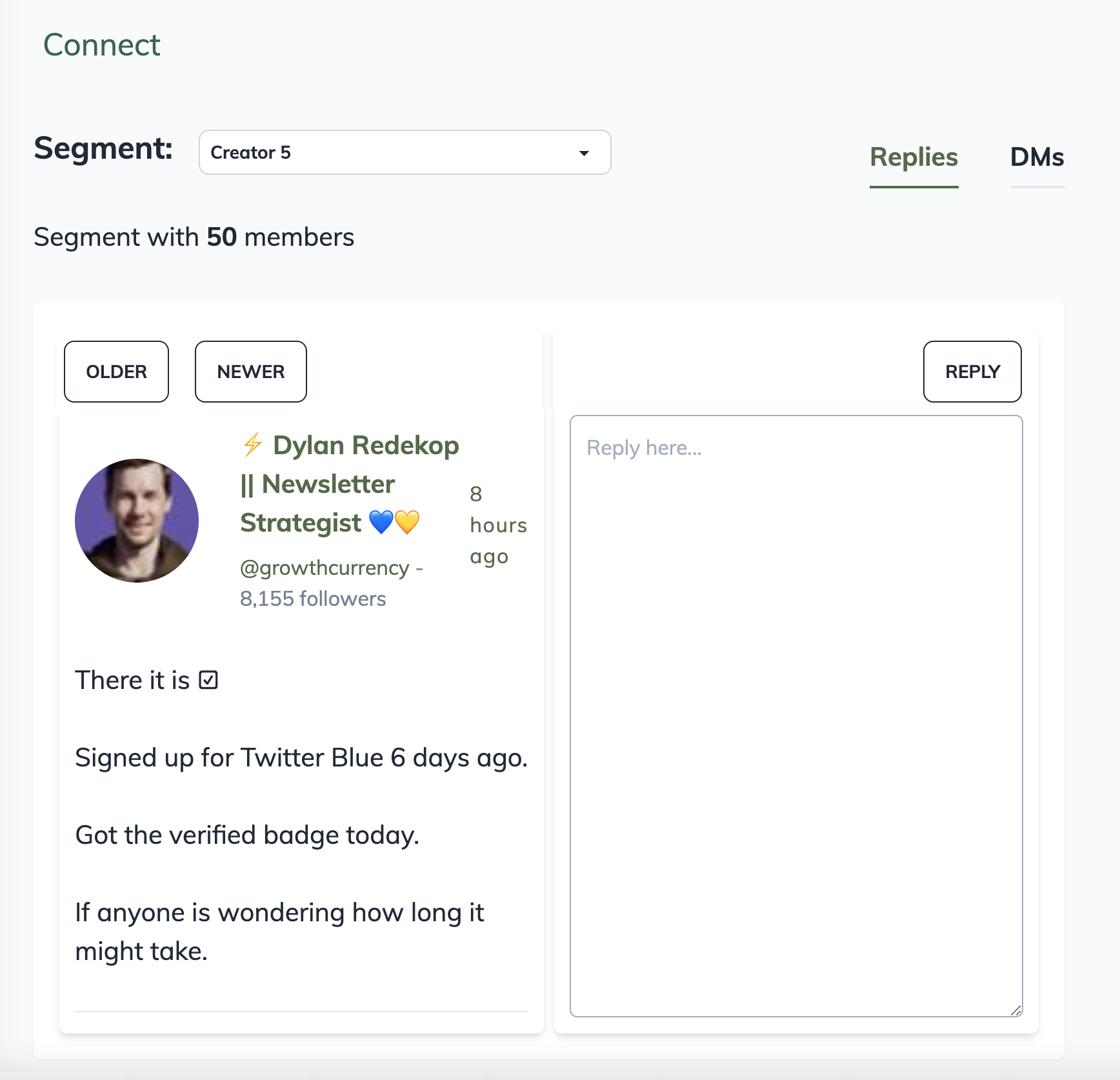 Implicit makes it easy to split people into specific segments. Then you can send them personalized DMs and connect with them.