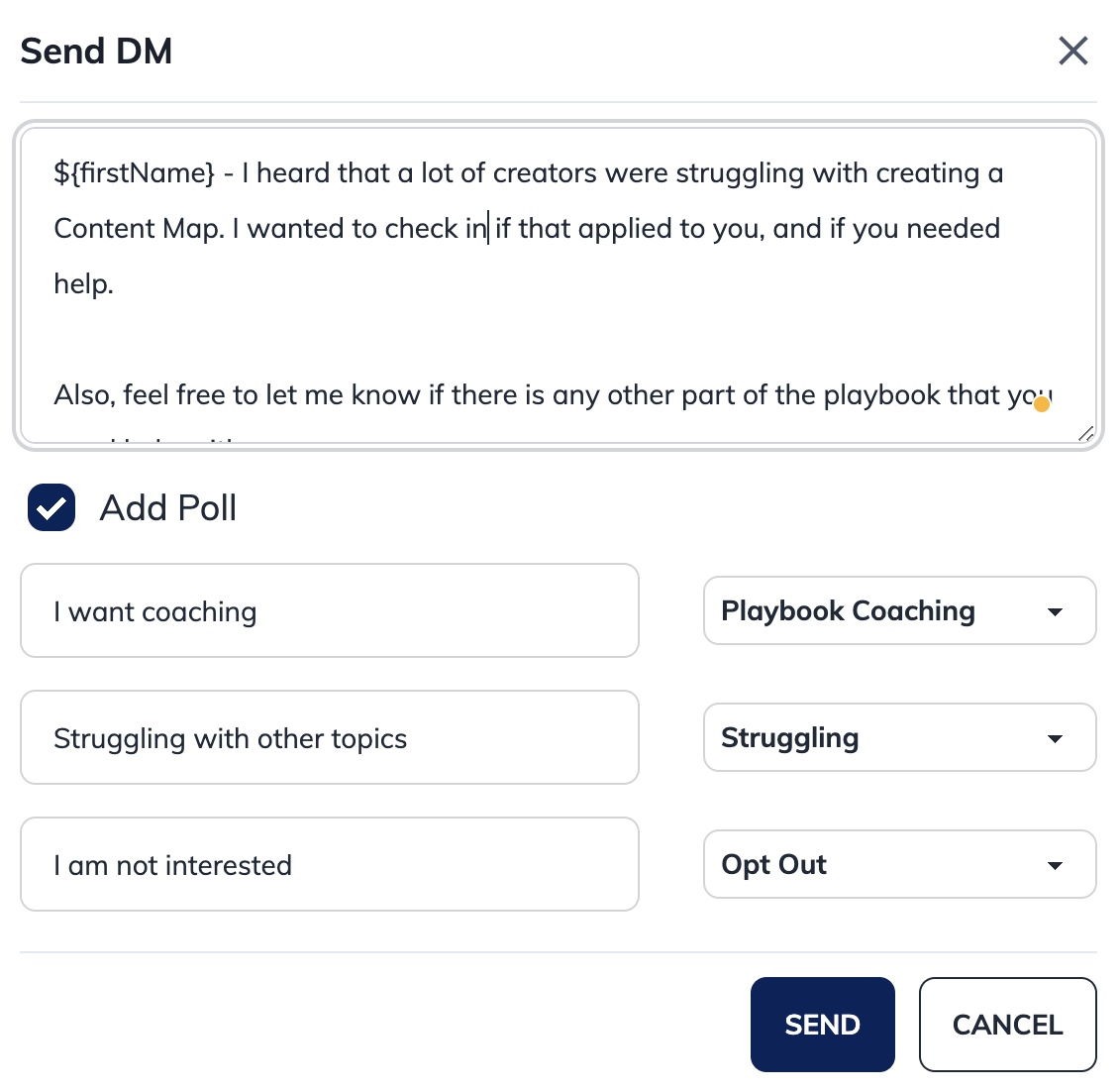 See what your audience enjoys with built-in DM polls and engagement tracking.